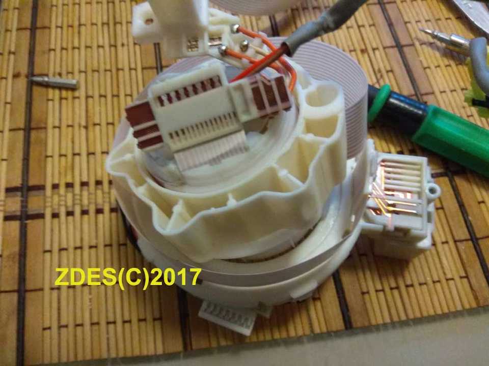Разбор улитки для извлечения плоского кабеля – кропотливое занятие. Обилие крепежных элементов и защелок, острые элементы контактного кольца повышают риск повреждения извлекаемого шлейфа.