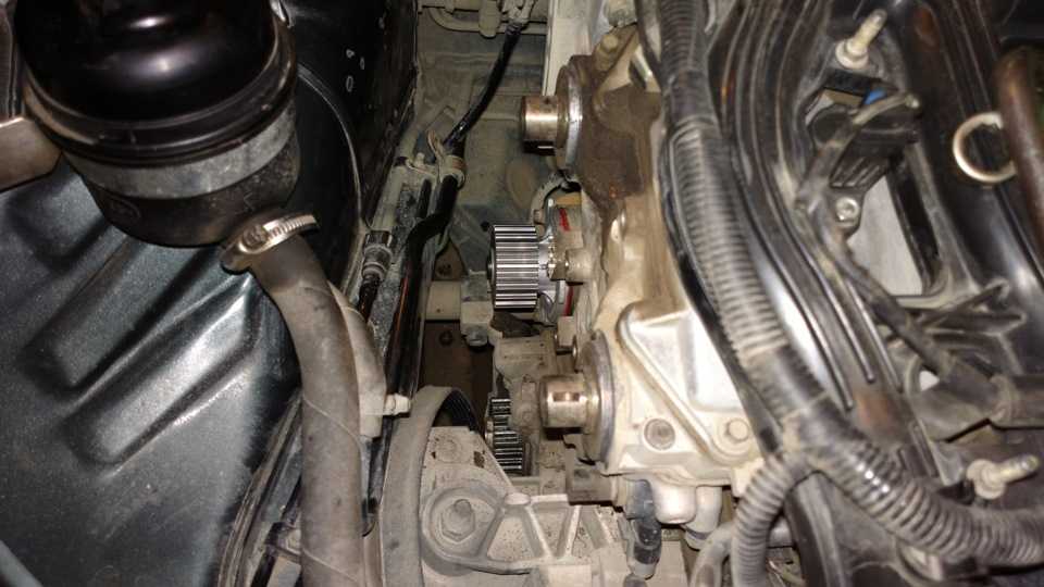 Чтобы облегчить доступ к водяному насосу, требуется снятие задней крышки ГРМ. Это является довольно трудоемким процессом, ибо шкивы распределительных валов крепятся на мощных болтах, что потребует наличие комплекта инструмента из числа вышеперечисленного. Затем с распределительных валов снимаются шпонки во избежание риска их потери в ходе ремонтных работ.