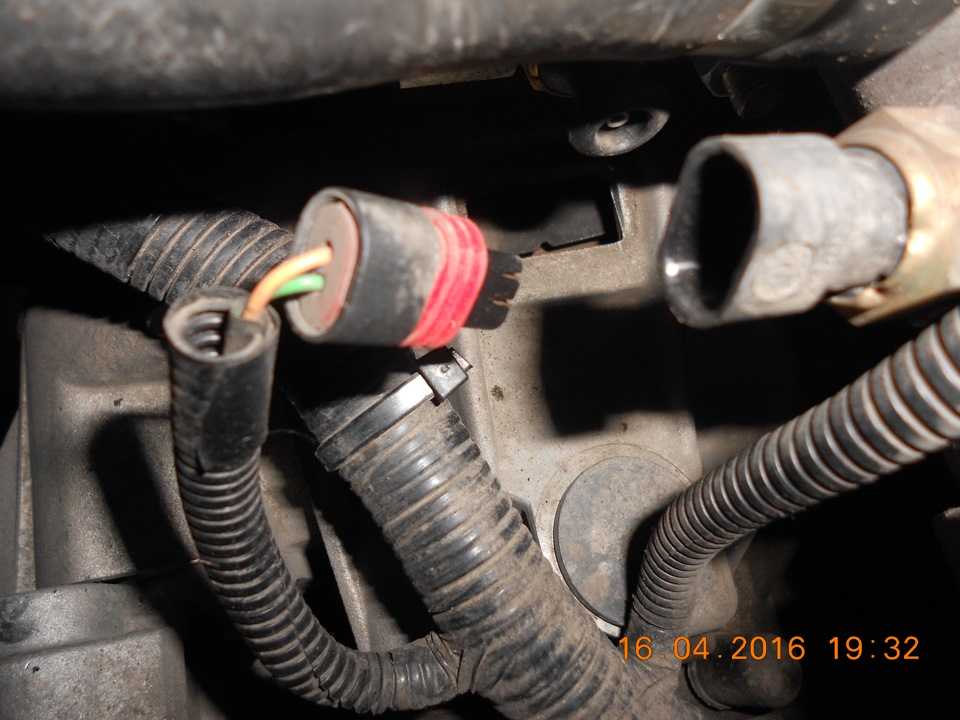 - Отсоединяется датчик коленвала путем разъединения соответствующей фишки возле верхней крышки ГРМ.