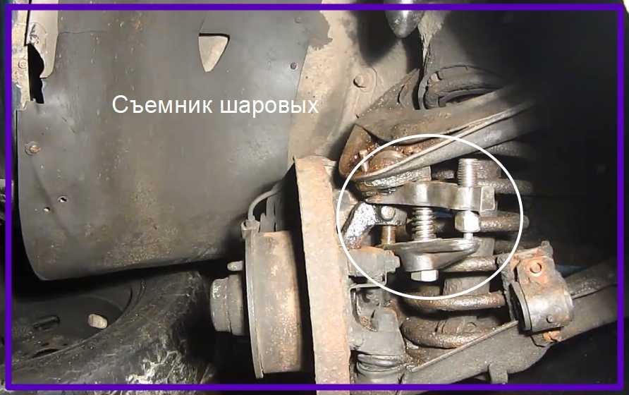 5. Между опорами установите съемник (специальное приспособление для демонтажа шаровых опор).