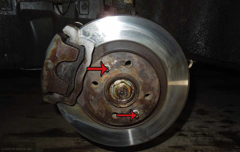 Снимаем тормозной диск, путем отвинчивая двух направляющих колеса.