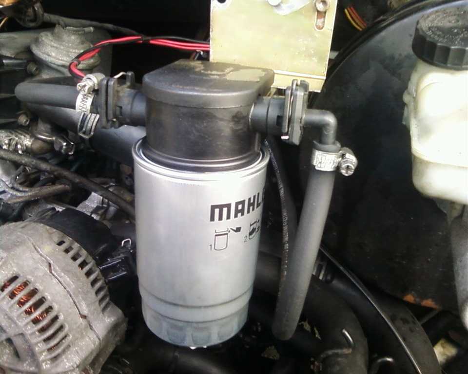 - Дизель. Дизельный двигатель тоже нуждается в качественно очищенном горючем, поскольку система достаточно чувствительная. Дизельное топливо отличается повышенным содержанием влаги, нежели бензиновый состав. ТФ разработан так, чтобы фильтровать мусор и удалять скапливающуюся влагу. Для этого предусмотрен сепаратор. Расположение достаточно простое — между двигателем и насосом, который качает топливо.
