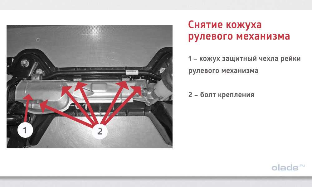 Обратите внимание на то, что снизу рулевая система оснащена пыльником (кожухом), он предназначен для защиты механизма от грязи и реагентов. Открутите все болты (5 шт.), фиксирующие пыльник, для этого используйте головку на 10